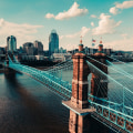 Roebling Suspension Bridge in Cincinnati. This bridge, which was completed in 1866, was the longest suspension bridge in the world at that time. It offers stunning views of the city skyline and is a popular spot for photography.
